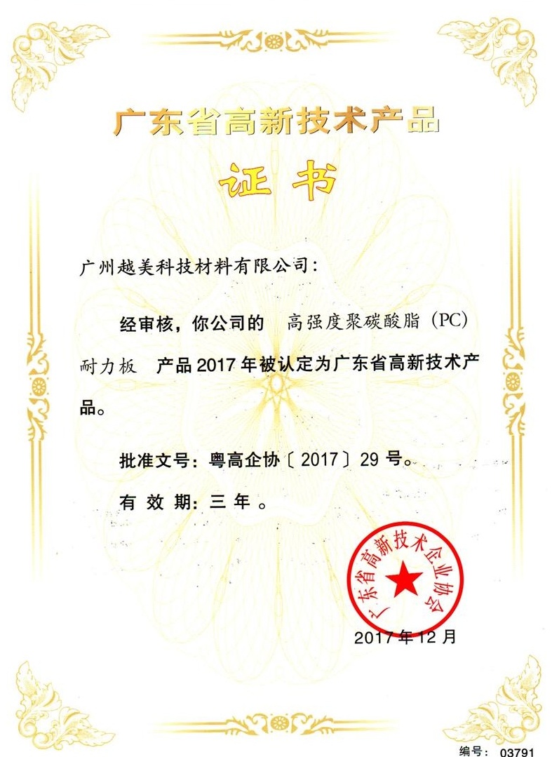 廣州越美科技材料有限公司,始創于1991年,至今有30年歷史,公司根據產業創新變革升級曾用名注冊6個,現公司名為第六代,是目前國內專業生產聚碳酸酯PC陽光板,PC耐力板,具有獨立知識產權、具備進出口資格和一般納稅人資格的產、供、銷一體化的中型民營企業。